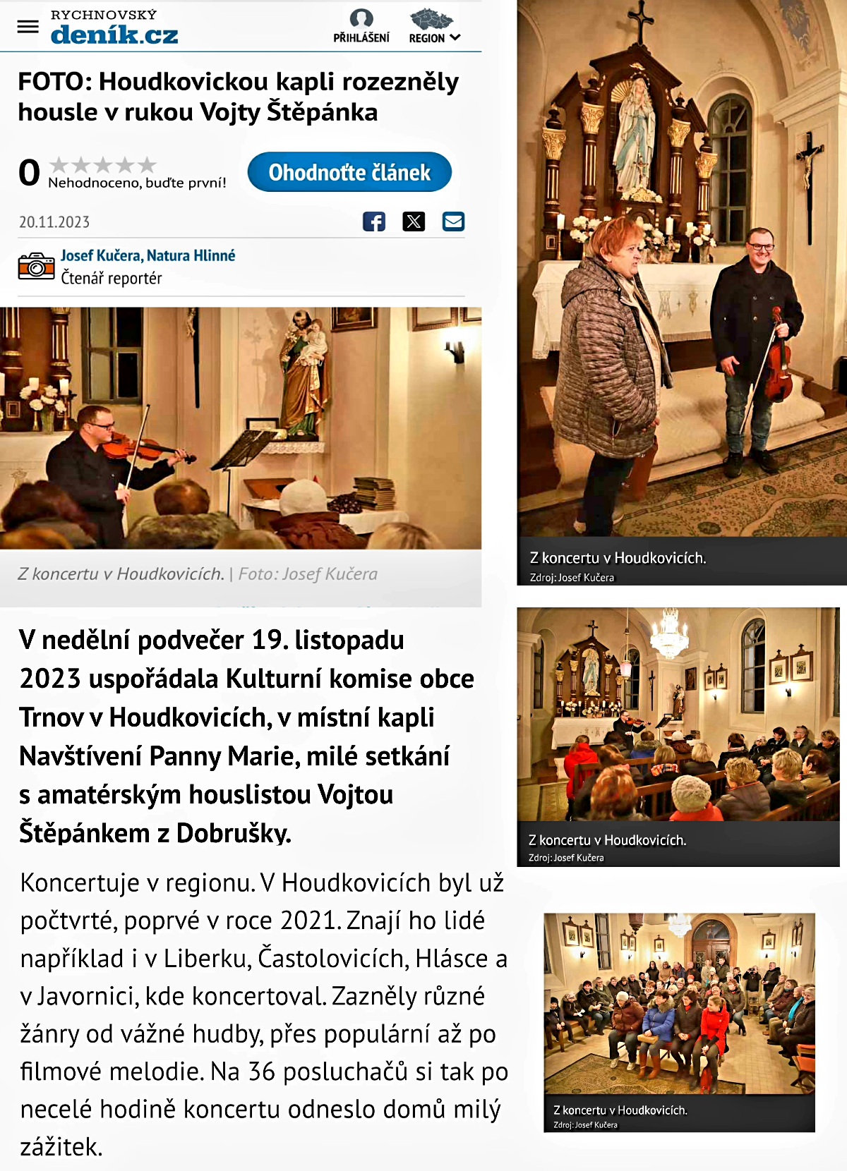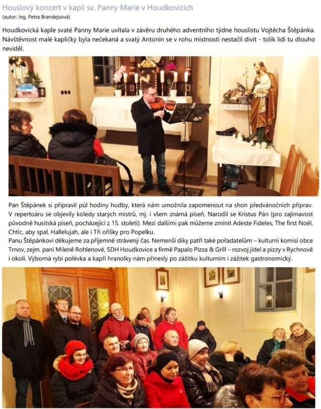 Hraní na posvátných místech jako jsou kostely a kaple, to je prostě něco úžasného! Skvělá akustika a tak trochu tajemná atmosféra spolu s tóny houslí vytváří jedinečný zážitek.