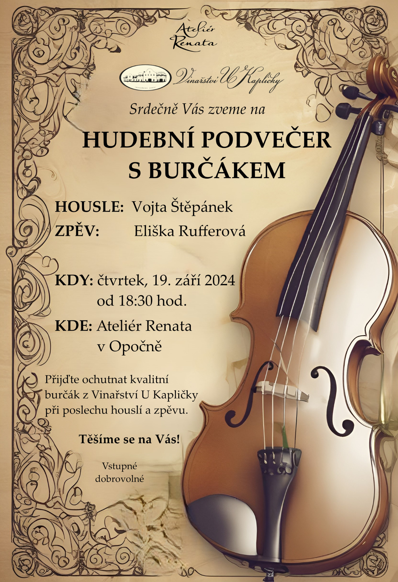 Hra na housle je pro mě životním stylem, nejen koníčkem. Hudba mě motivuje ve všech aspektech života. Hraji od dětství a za sebou mám řadu sólových vystoupení. Od různých slavnostních ceremoniálů přes koncerty v kaplích a kostelech po hraní na veřejných slavnostech nebo třeba i v kavárně, vinárně nebo v domově seniorů. Odehráno mám také mnoho svatebních obřadů. Zkrátka, zvuk houslí se hodí kamkoliv! Moc dobře si uvědomuji, že mé hraní není dokonalé. Zato je ale od srdce a pro radost. 🎻
